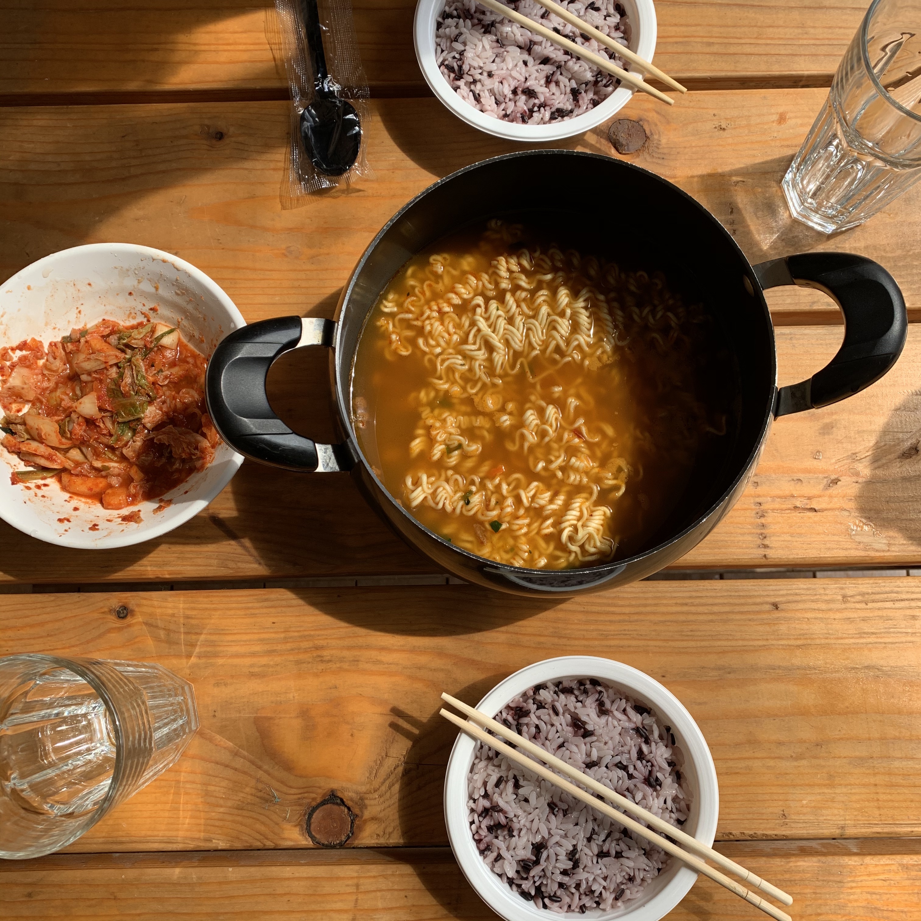 전날 술을 좀 마셔서 아침은 해장 겸 라면으로 시작한다.